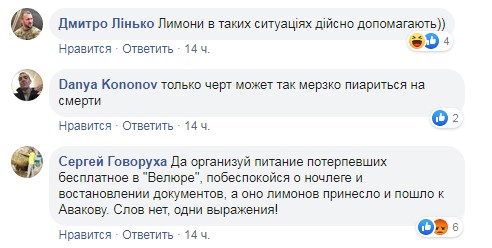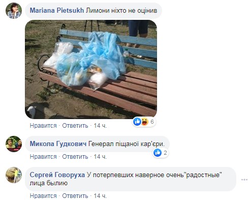 Він на місце трагедії приїхав не з "порожніми" руками, а привіз лимони. Правда люди не зрозуміли, навіщо вони їм. Тому залишили "презент" на лавці біля будинку.