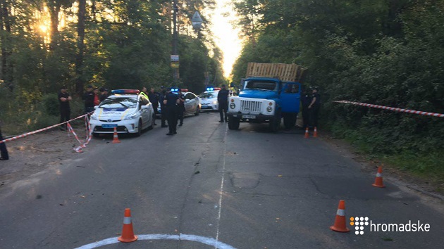 На фото з місця подій видно сліди пострілів на капоті і розбите лобове скло.