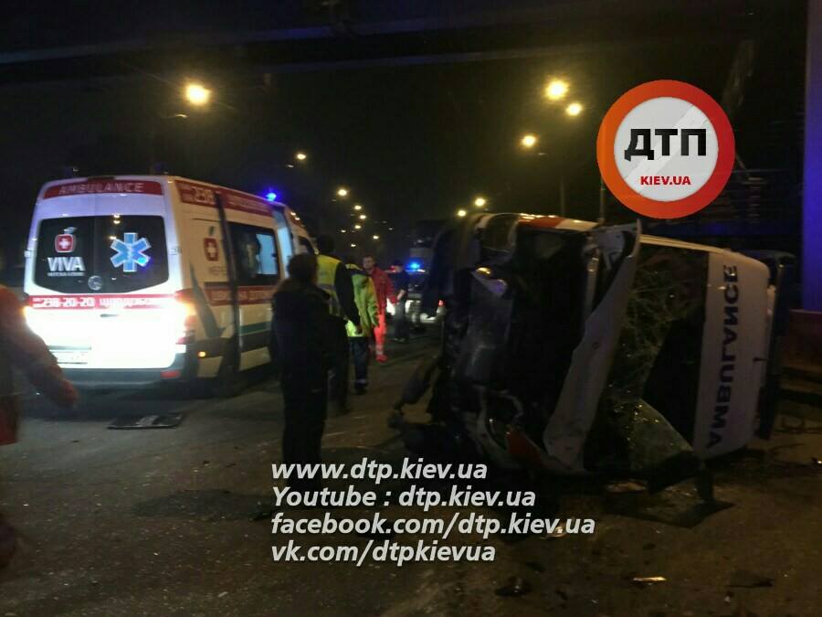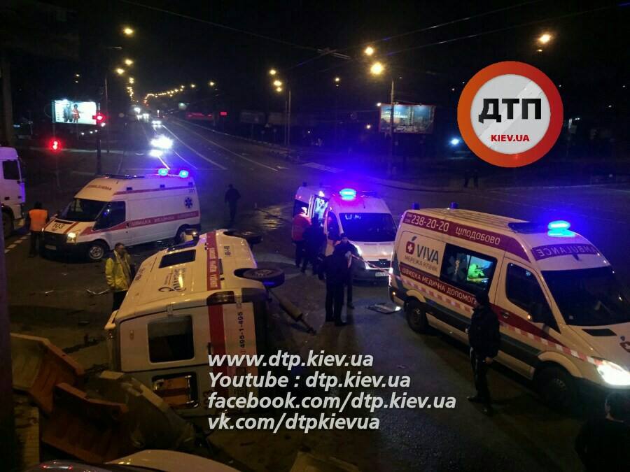 У Києві в ніч на 28 жовтня на перехресті проспекту Лобановського і вулиці Кайсарова трапилася дорожньо-транспортна пригода з автомобілем "швидкої допомоги".