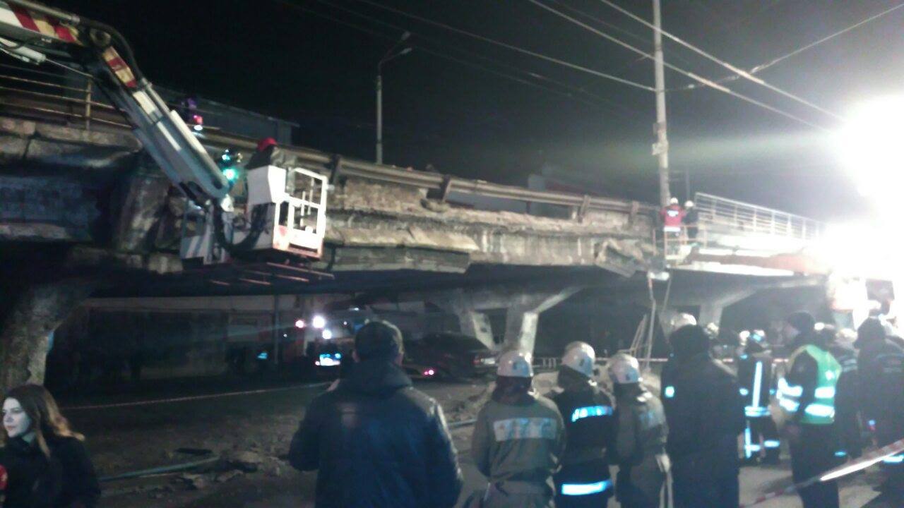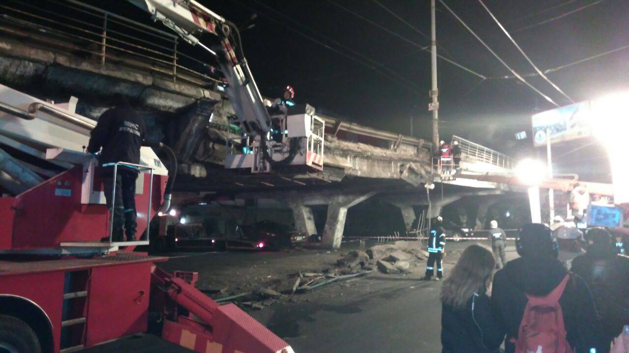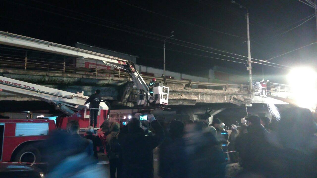 Опубліковані нові фотографії з місця обвалення Шулявського мосту в Києві.