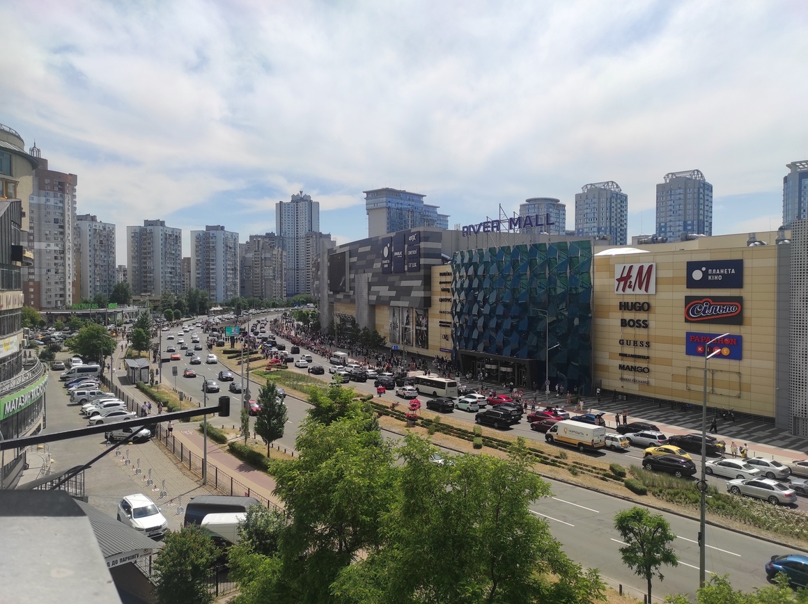Повідомляється, що люди час від часу перекривають рух Набережною, а водії біля ТРЦ "RiverMall" сигналять у знак підтримки.