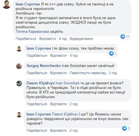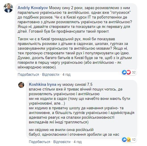 Однак деяких батьків обурив цей факт. Вони написали на сторінку школи в Facebook. Їм відповіли, що дійсно деякі уроки ведуть російською, на прохання учнів. Однак в основному викладання в навчальному закладі проводиться на рідній мові.