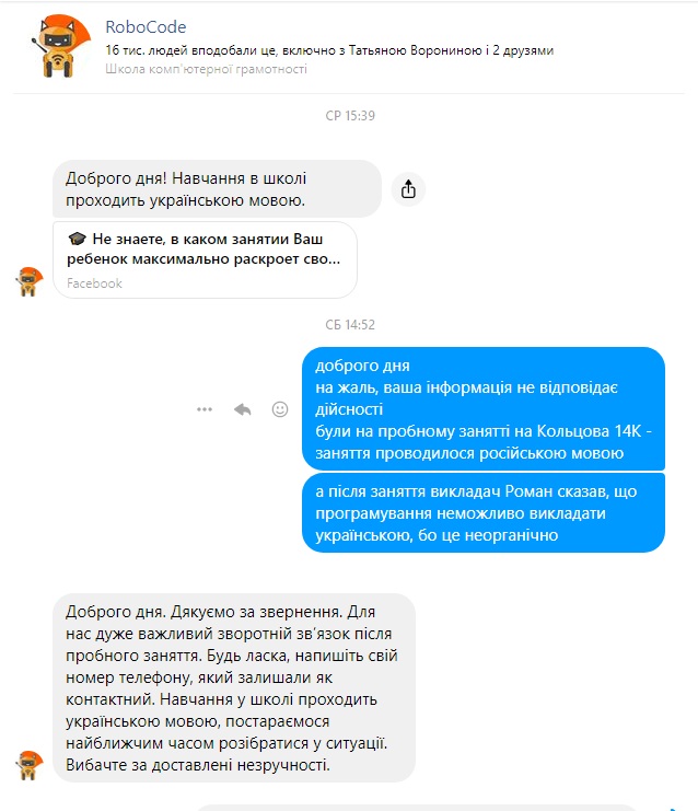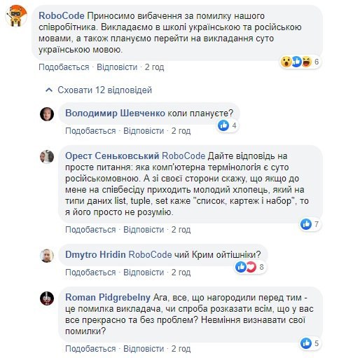 Незабаром в головному офісі RoboCode заявили, що їх викладачі спілкуються як на українській, так і на російській мовах.