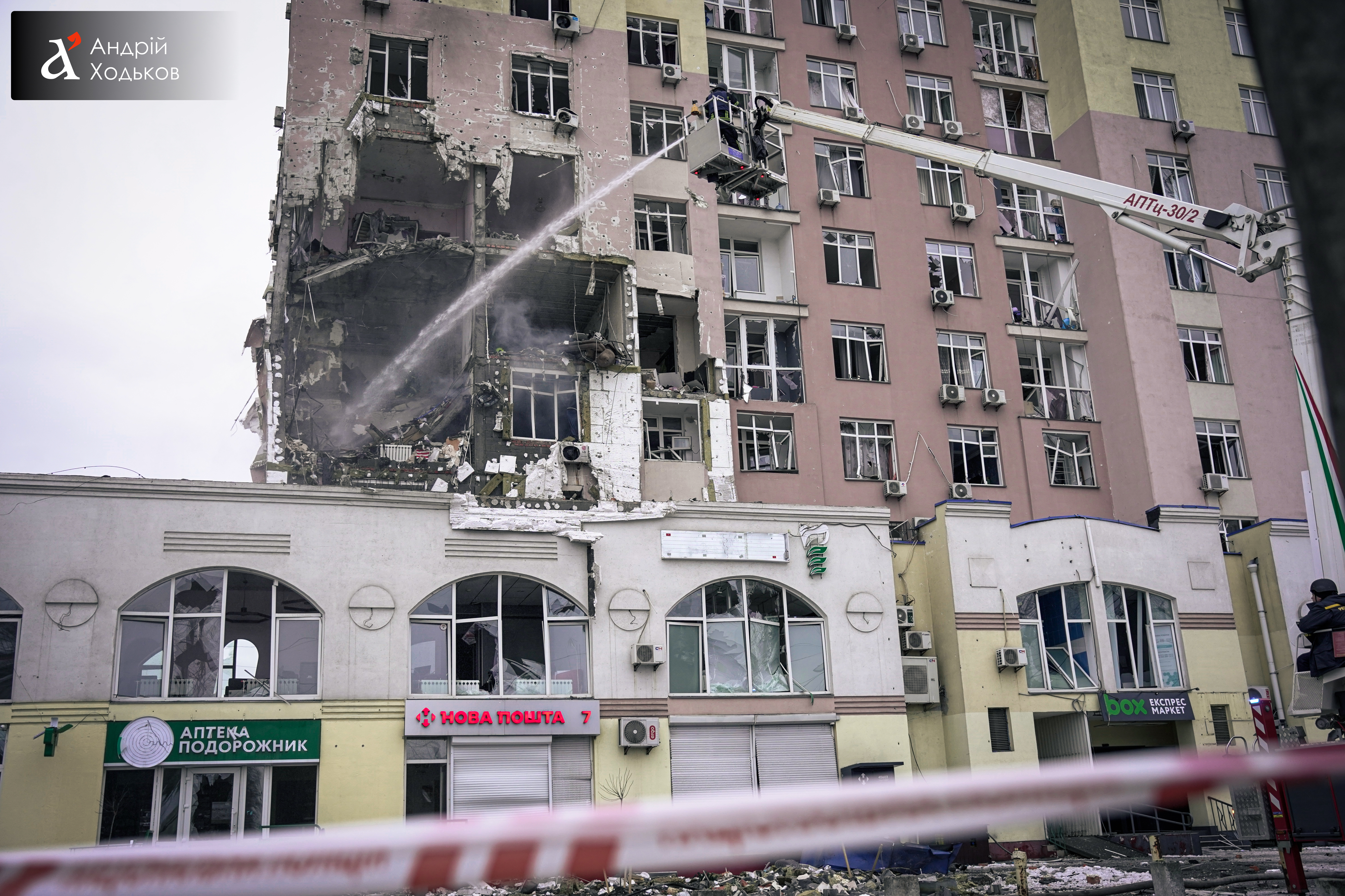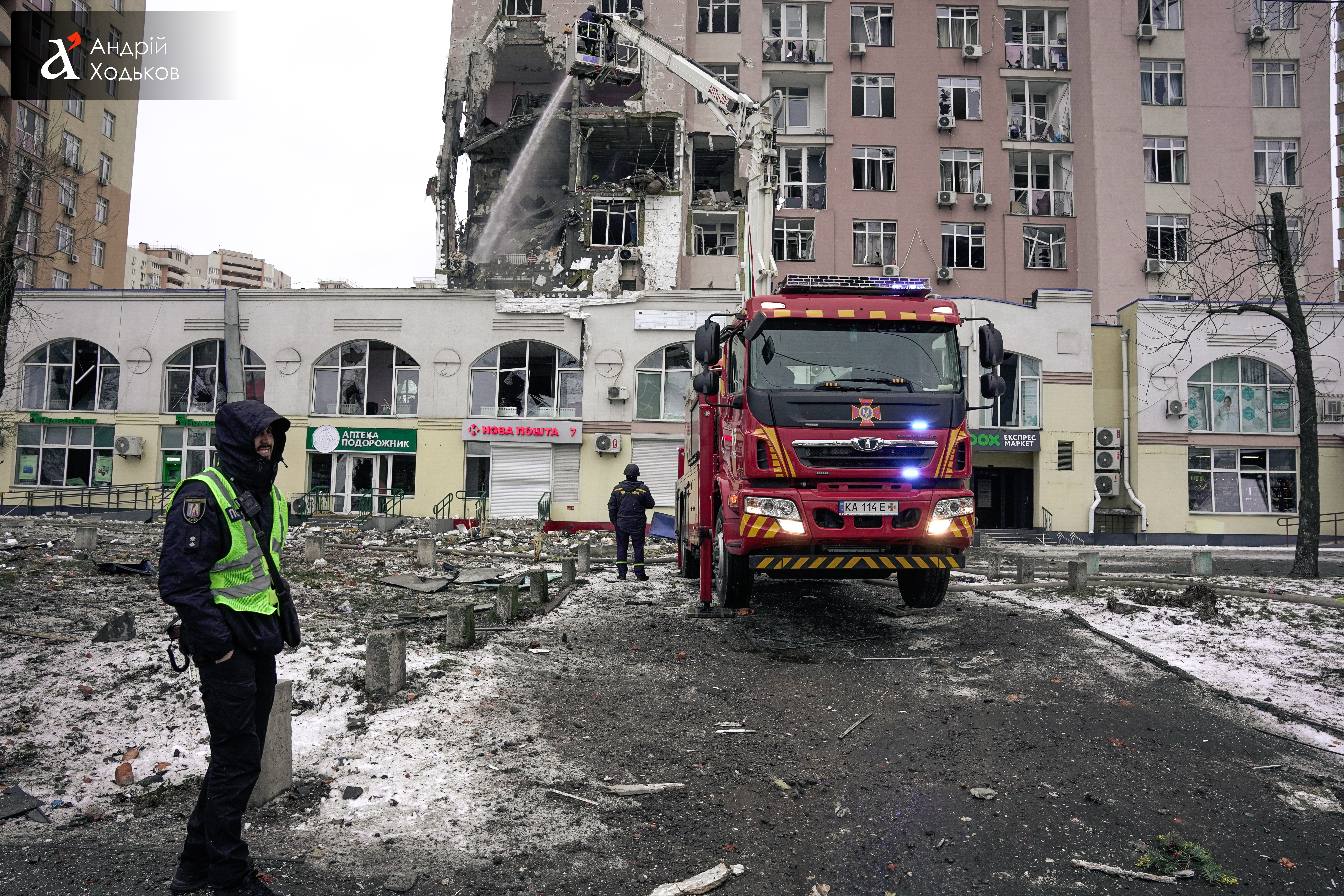 Рятувальники ліквідовують пожежі та розбирають завали, а поліція та ДСНС евакуювали 68 людей із геріатричного пансіонату в Дарницькому районі.