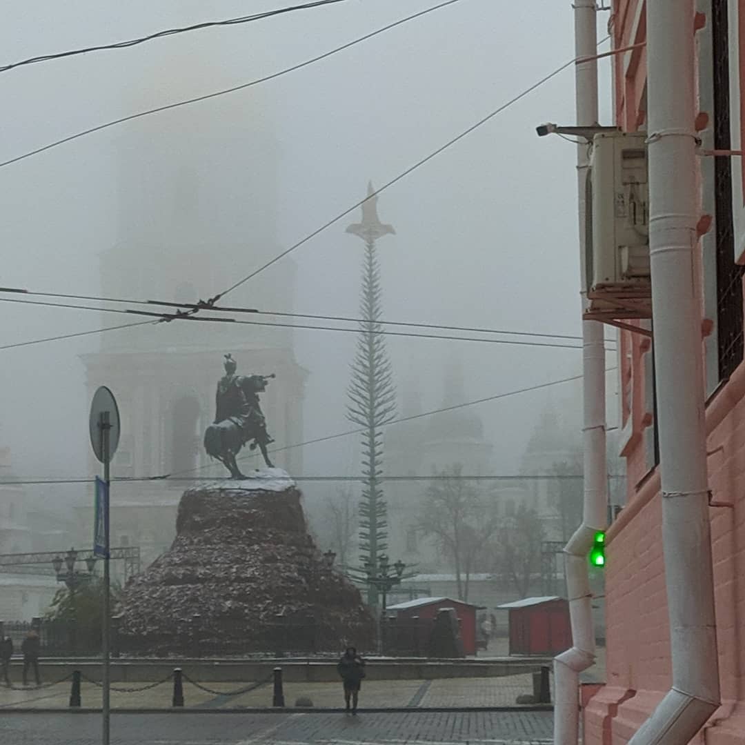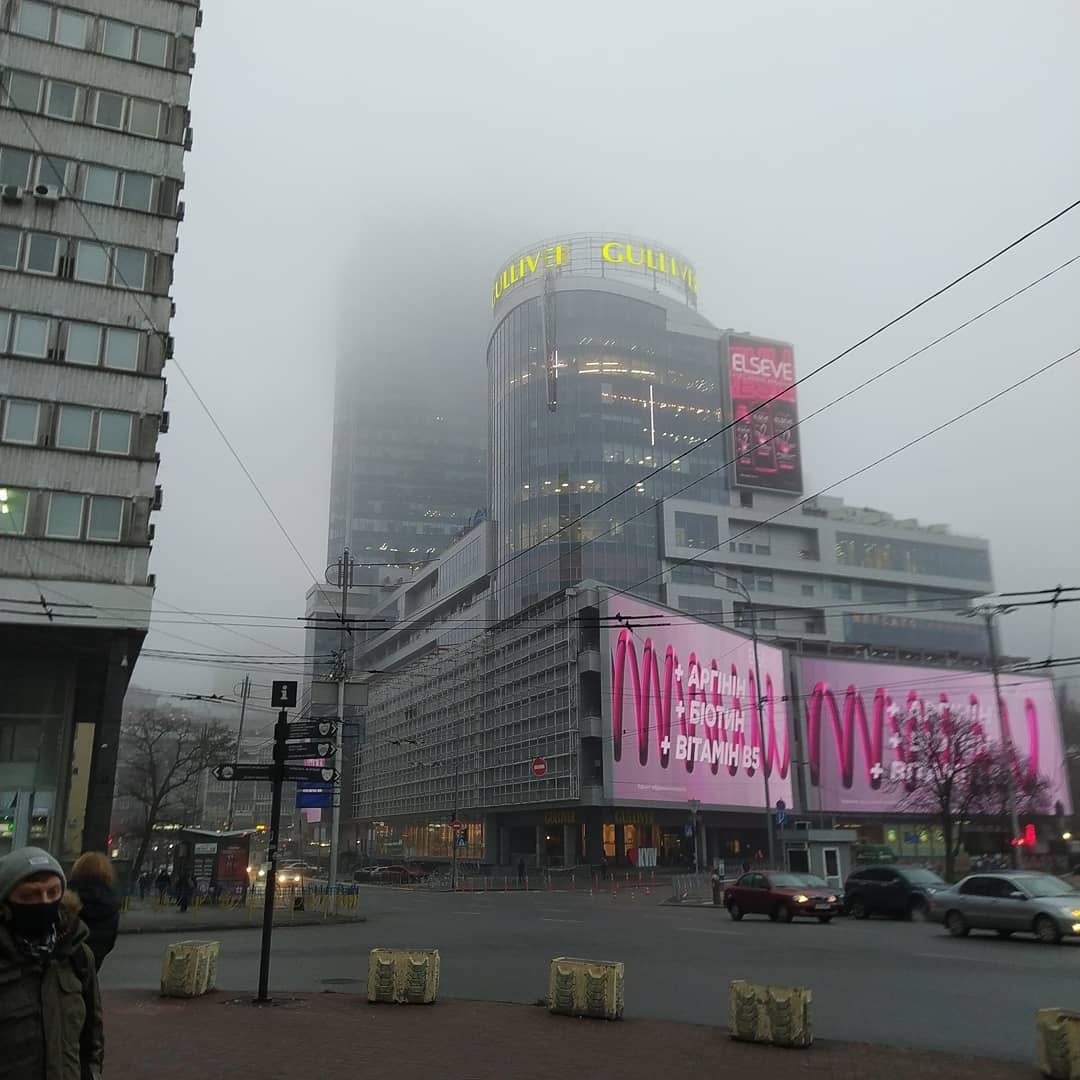 Вранці в п'ятницю, 4 грудня, через високу вологість повітря столицю України накрив густий туман, який перетворив вулиці міста на антураж для зйомок містичного фільму.