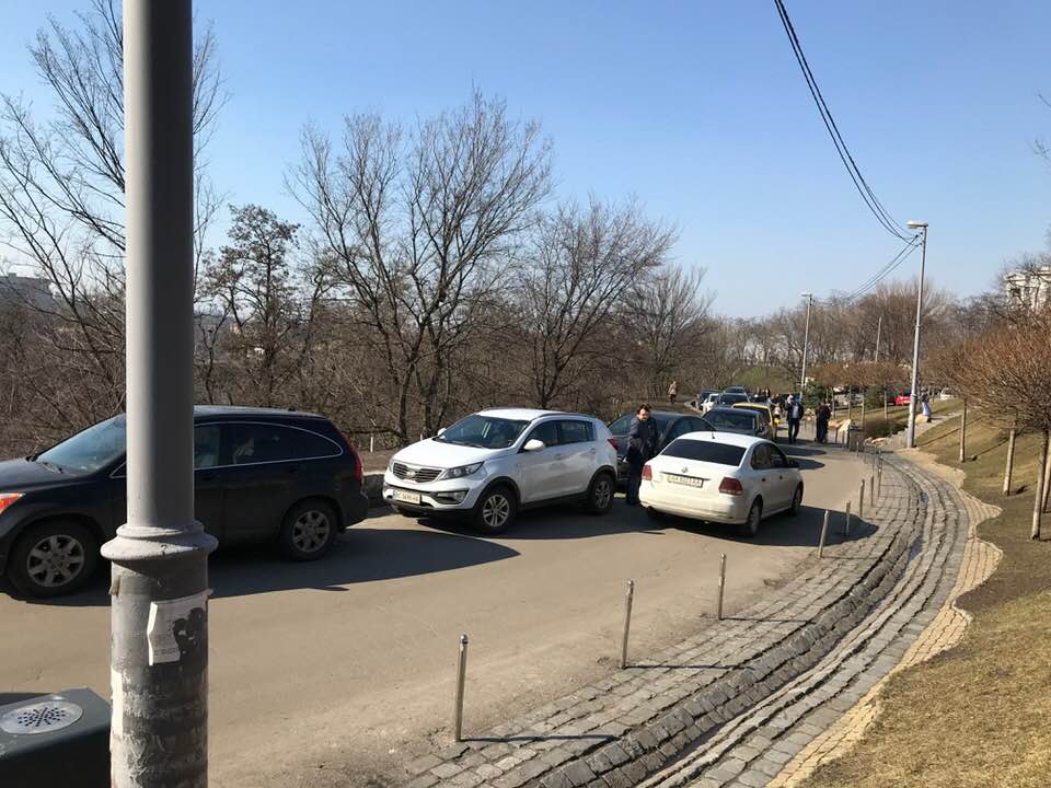 Також велика кількість машин припаркована і на пішохідній Пейзажній алеї, де рух автомобілів взагалі не передбачено.