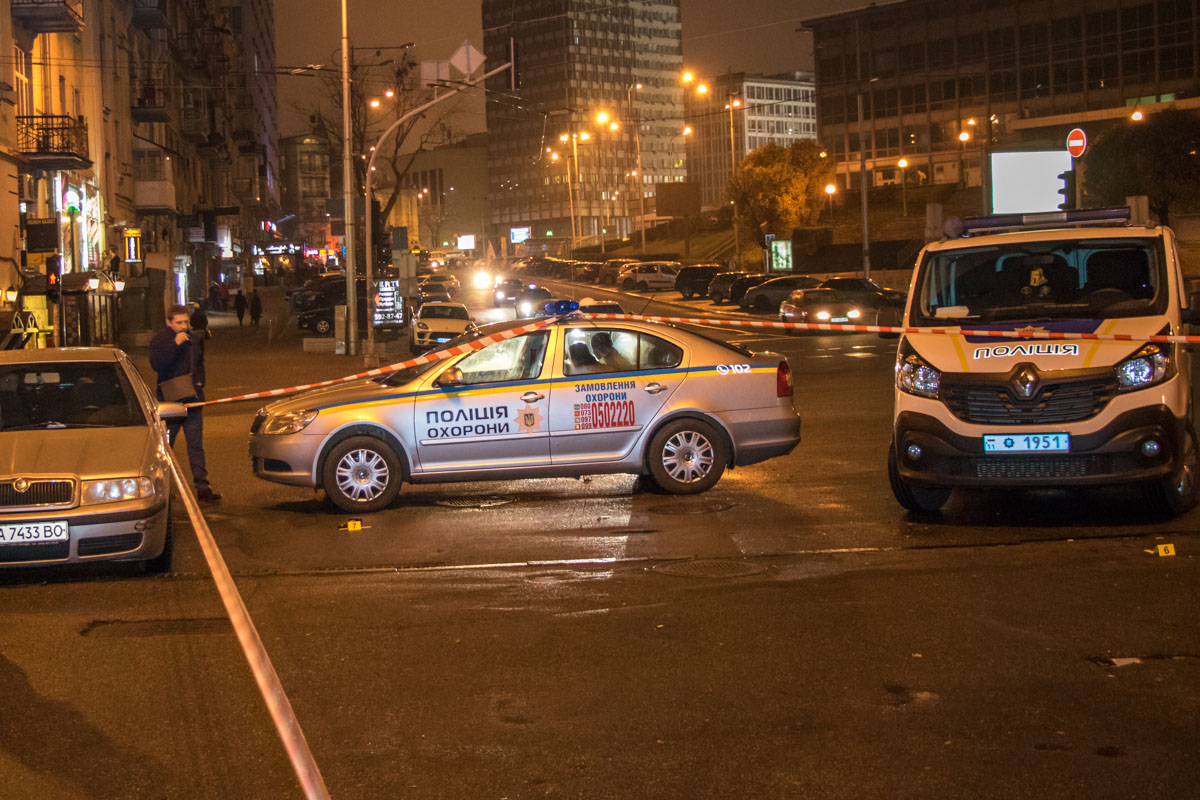 "Ми патрулювали район, спускалися по вулиці Еспланадній. Бачимо стрілянина і бігти два хлопця. Один з пістолетом, а інший тікає. Ми виходимо з машини, і біжимо спочатку за громадянином з пістолетом. Вдаємося до арки, водій наш перерізав йому шлях і зловили другого. Затриманого оглянули медики, життєво важливі органи не зачеплені, травму отримав від гумової кулі", сказав один зі співробітників поліції охорони.