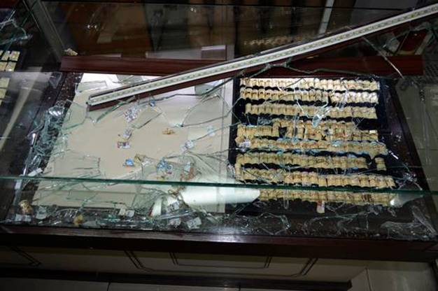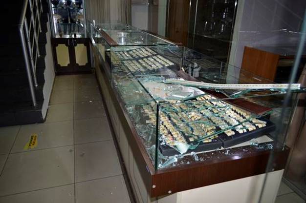 Збройні люди увійшли в ТЦ, розбили вітрини і витягли лотки, в яких знаходилися прикраси із золота.
