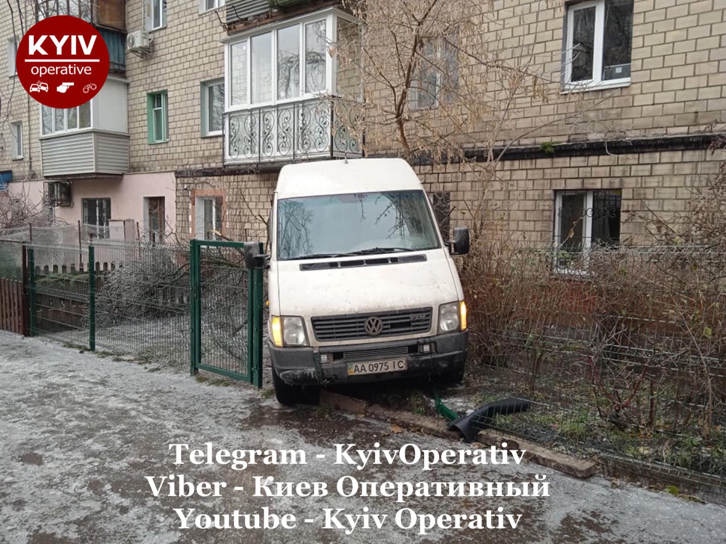 У Києві, який вже другу добу продовжує бути вкритим ожеледицею, на вулиці Бурмістенка, мікроавтобус без водія покотився і проїхав кілька десятків метрів по вкритій льодом вулиці.