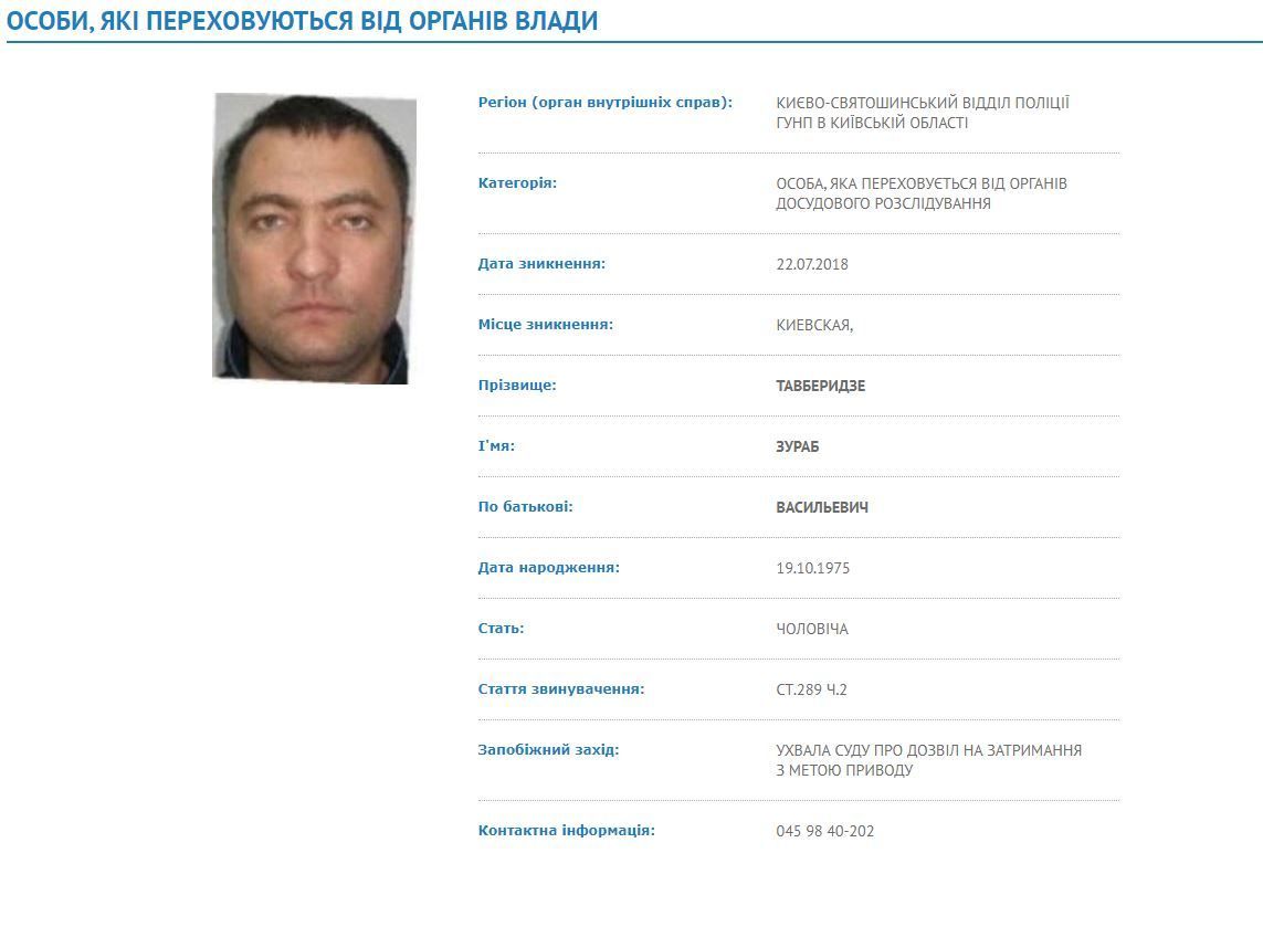 Затриманим виявився 44-річний Зураб Тавберідзе. Згідно з базою розшуку МВС, чоловік звинувачується в незаконному заволодінні транспортними засобами (ст.289 ч.2 ККУ) та суд надав дозвіл на його затримання з метою приводу.