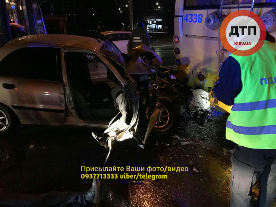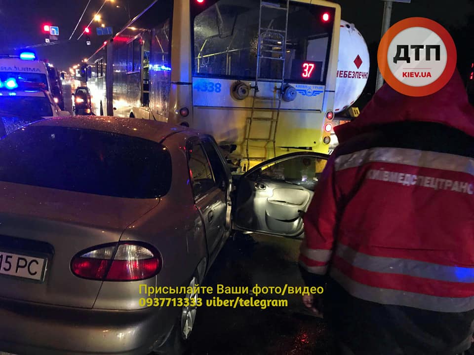 У Києві на перетині Лісового проспекту і вулиці Братиславської легковий автомобіль врізався в тролейбус.