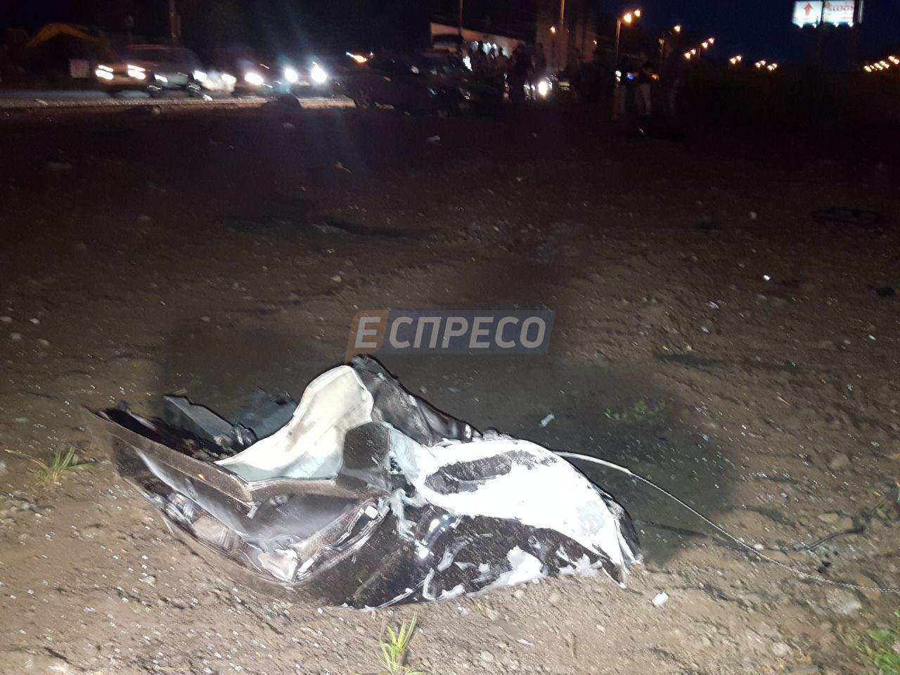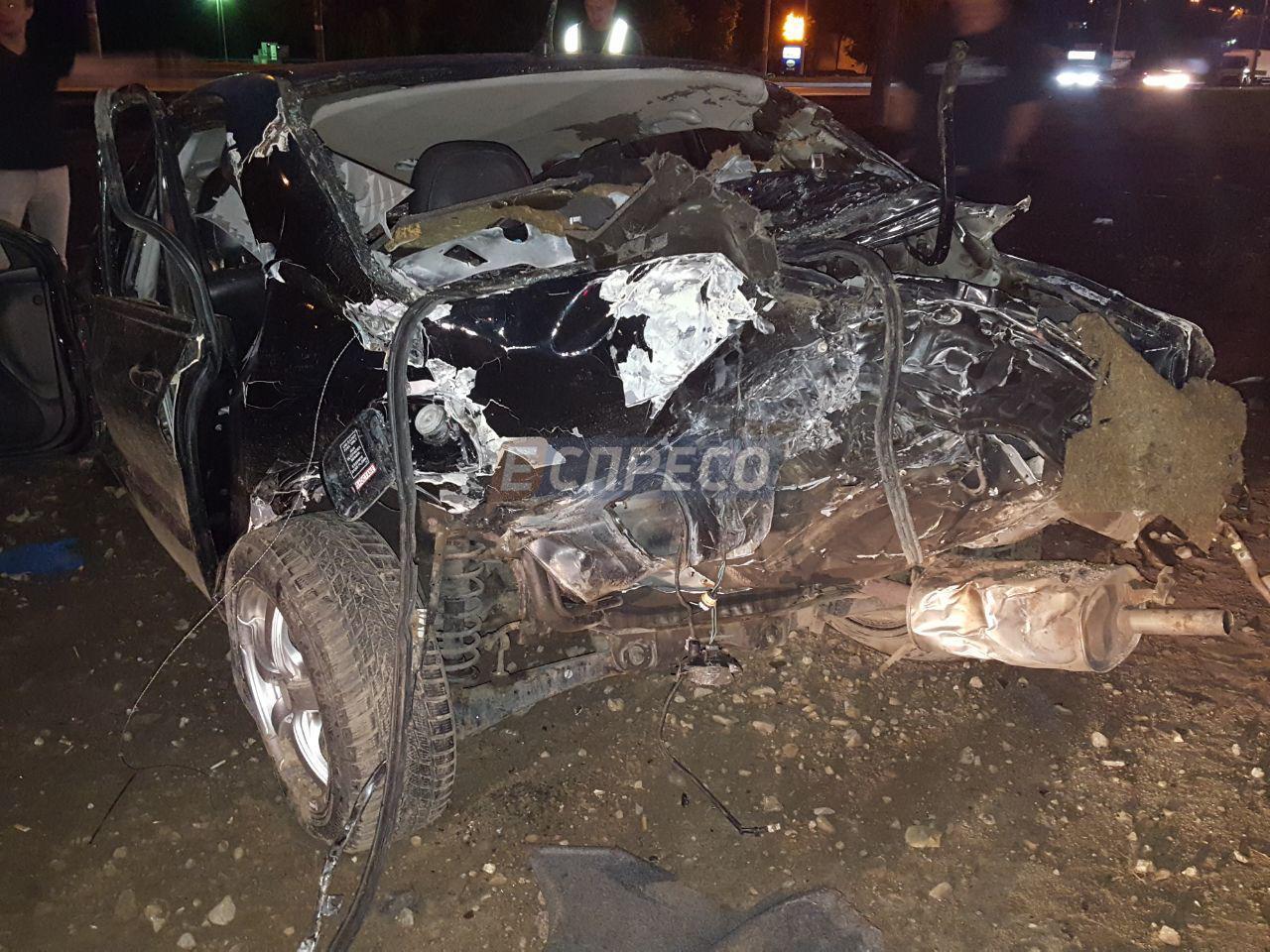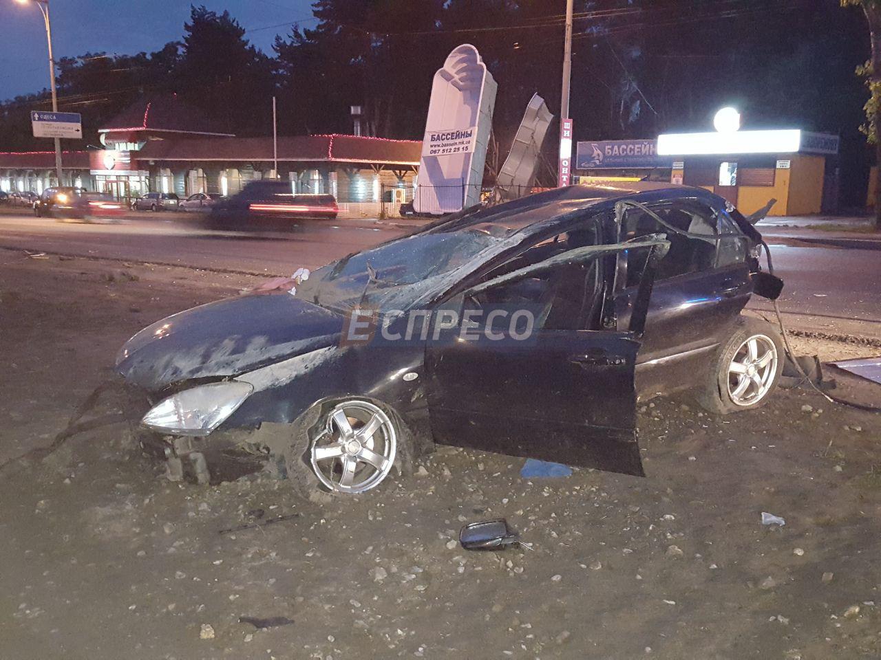 Перед цим автомобіль підкинуло і він врізався у стовп на висоті 2 метри. В результаті удару машину перевернуло кілька разів. В ДТП постраждали водій і його пасажирка.