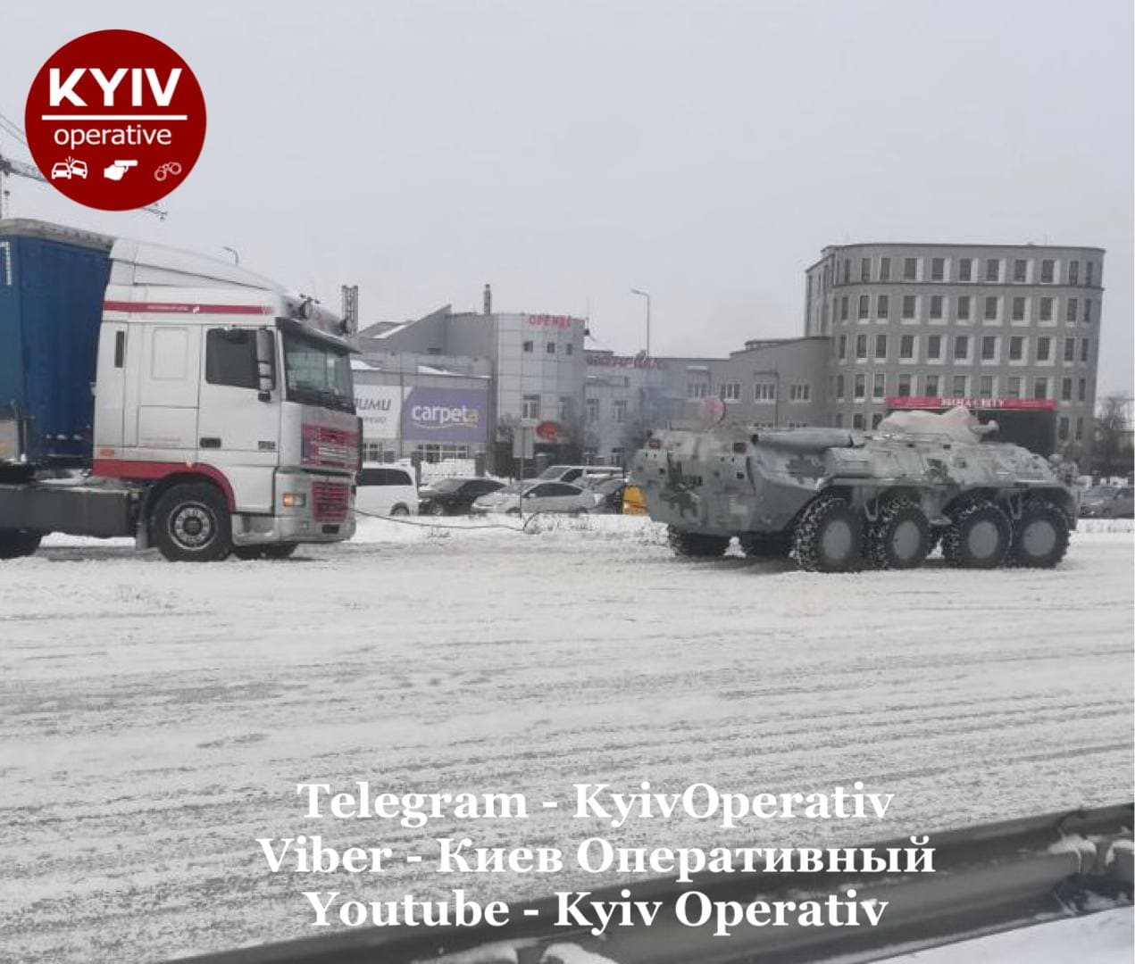 Зокрема, для допомоги вантажівкам, які застрягли на Кільцевій дорозі задіяли БТРи.