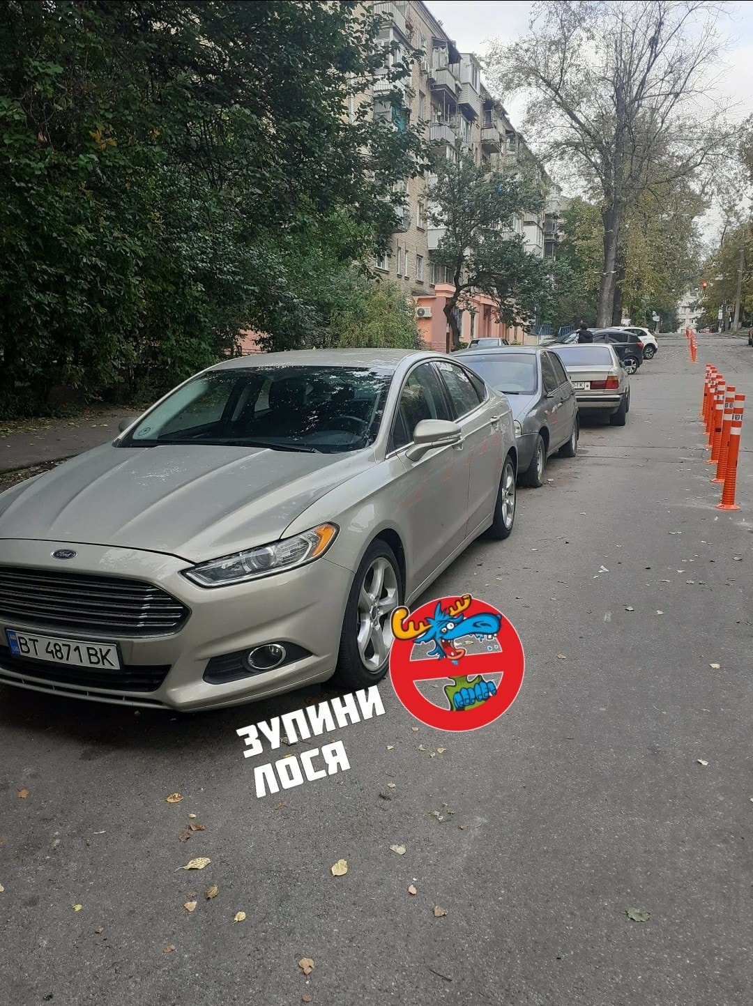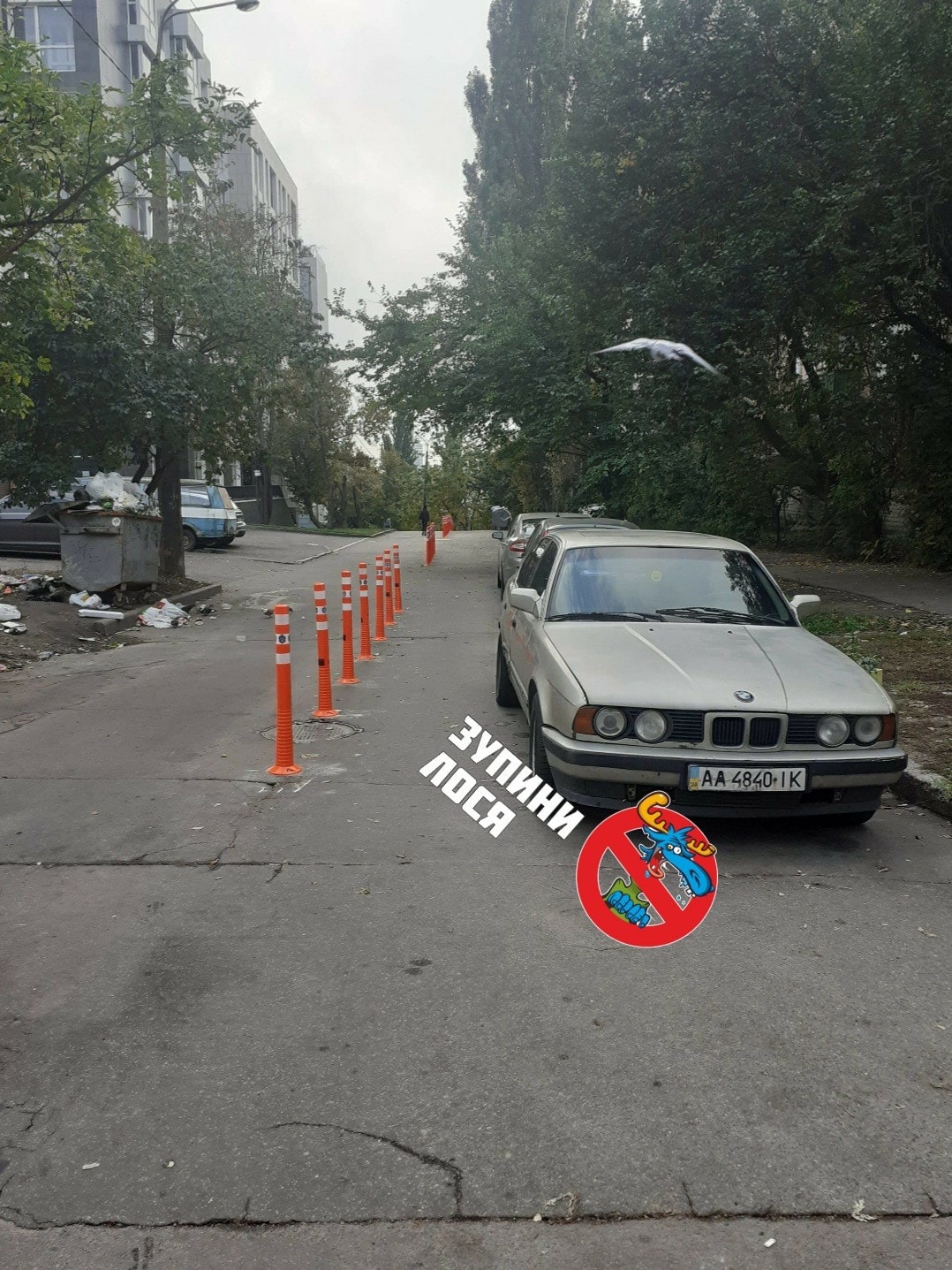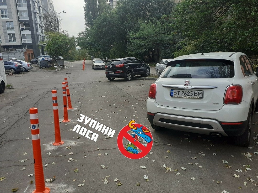 "У Києві на вул. Лейпцизька встановили делінеатори! Лосі:" А де ж ми паркуватися-то будемо! Ми на своїх 7 аршинах стояли і стояти будемо", - з сарказмом підписав знімки автор публікації.