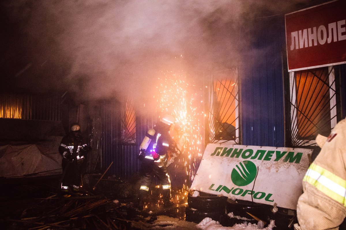 Станом на 3:50, загоряння ще не локалізували, а вогонь з одного приміщення з лінолеумом і деревиною продовжував поширюватися далі на сусідні будівлі. У торгову точку, в якій сталося замикання, співробітники ГСЧС не могли потрапити близько 30 хвилин. Вони розкрили двері в приміщення бензорізом, коли вогонь вже вибив всі стекла і палав з них.