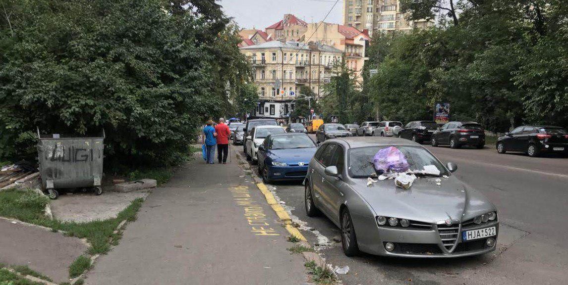 У мережі з'явилося фото, на якому видно, що на припарковану в недозволеному місці Alfa Romeo хтось насипав цілу купу сміття.
