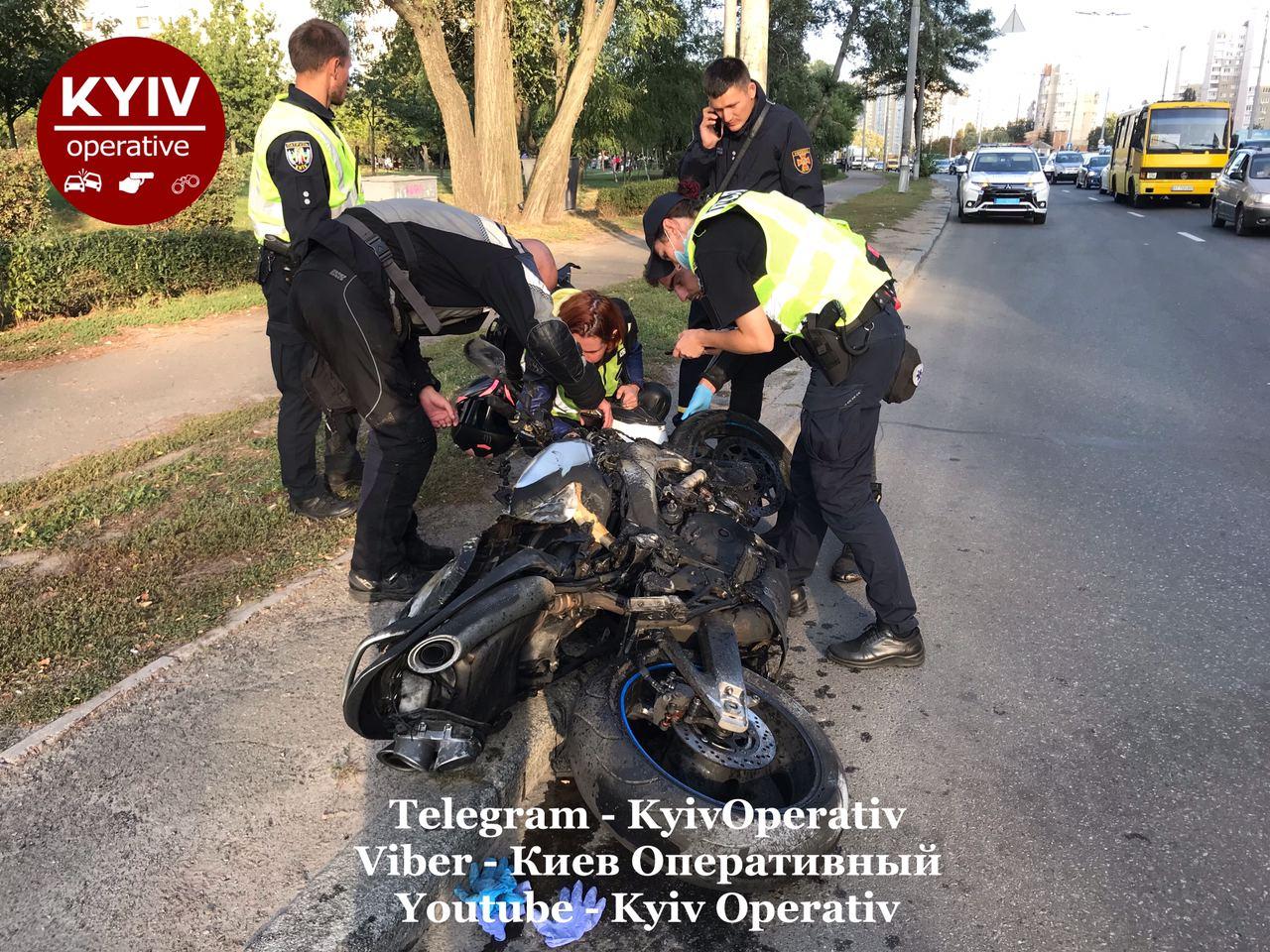 У Києві на проспекті Правди, 43, ввечері в неділю, 20 вересня, сталася аварія за участю мотоцикліста, його транспортний засіб загорівся і влетів у зустрічний автомобіль.