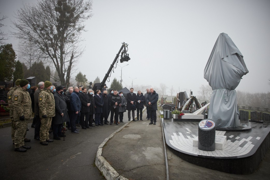 У Києві, на Байковому кладовищі, відкрили пам'ятник українському космонавту, Герою України Леоніду Каденюку, на відкритті був присутній президент Володимир Зеленський.