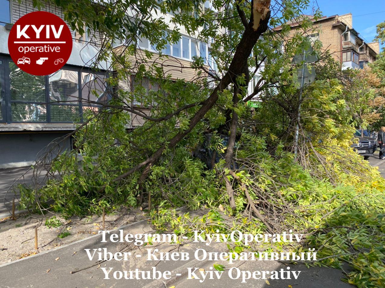 У понеділок, 5 жовтня, в Києві пориви вітру зламали гілки дерев - ті впали прямо на залишені в недозволеному місці автомобілі.