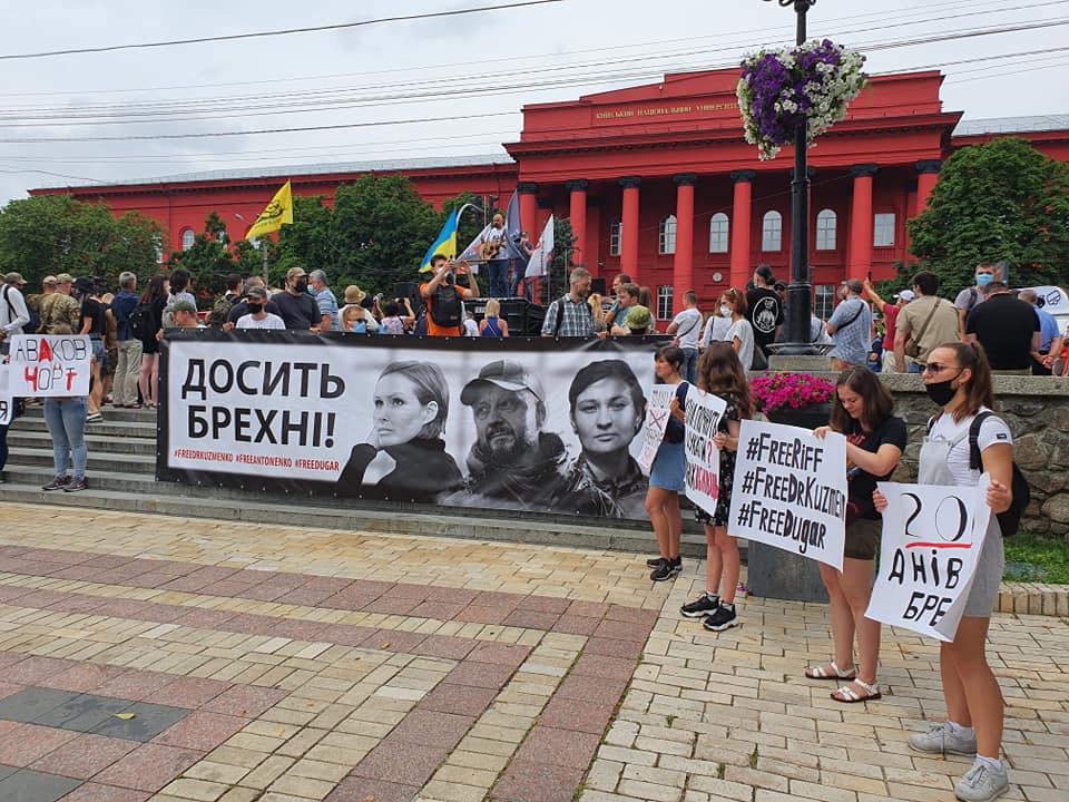 Учасники акції вимагають справедливості і звільнення незаконно ув'язнених Антоненка і Кузьменко, а також справжнього розслідування вбивства журналіста.