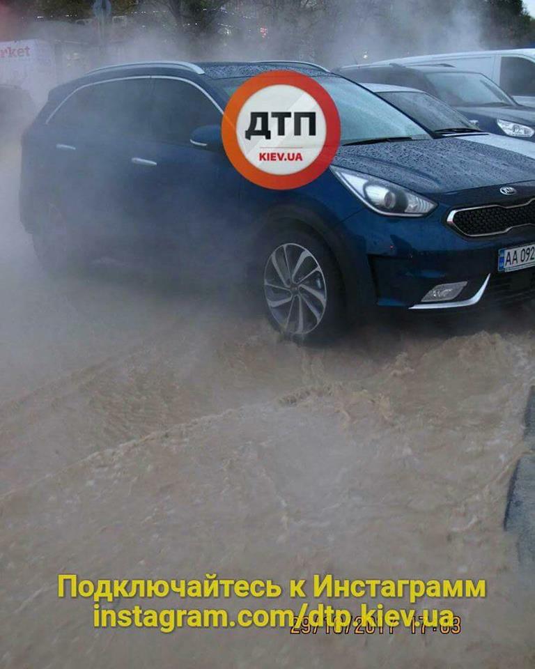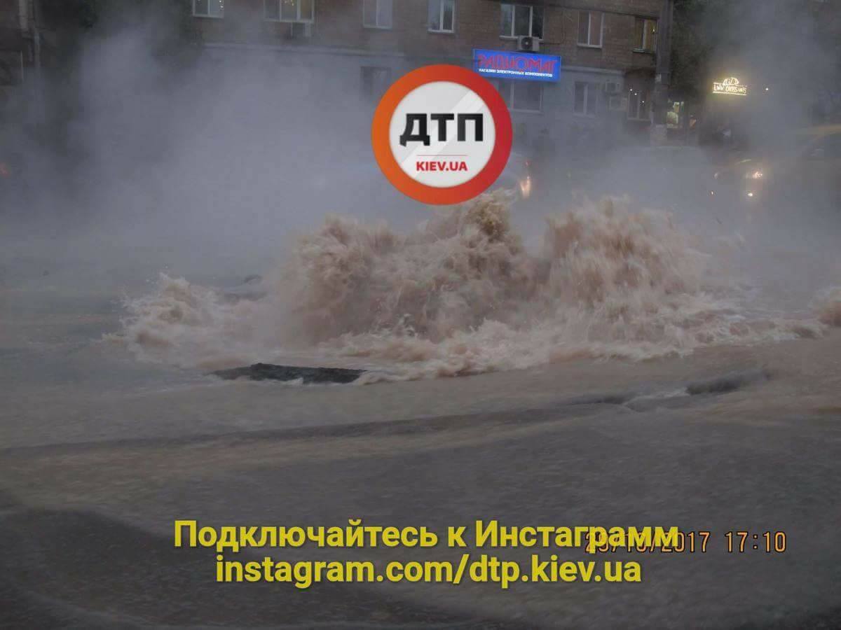 У Києві на Караваєвих дачах біля Радіоринку сталося комунальна НП, в результаті якої ділянка проїзної частини і тротуару виявився залитий гарячою водою.