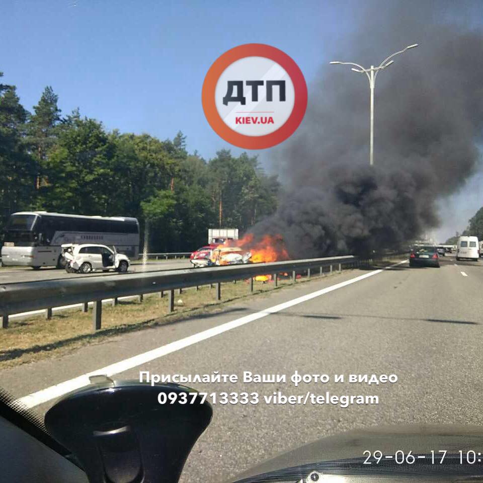 У Києві на Бориспільській трасі сталася серйозна дорожньо-транспортна пригода із загоранням автомобіля.