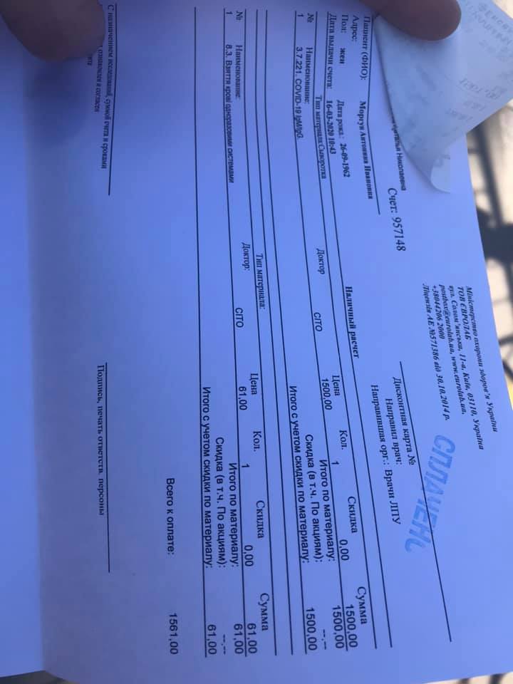 "Кому цікаво: вартістю 1500 грн-на місці, можна брати контейнери для біоматеріалу і забір робити не у них. Є також "виїзний" тест", - додав автор поста.