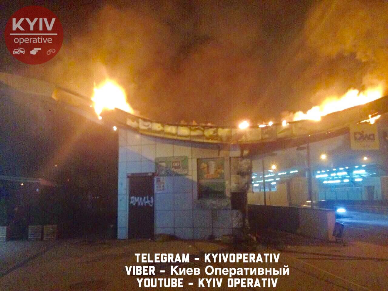 Сьогодні вночі в Києві загорілася зупинка швидкісного трамвая маршруту №3 "Ромена Роллана" (розташована між зупинками "Кільцева дорога" і "Гната Юри").
