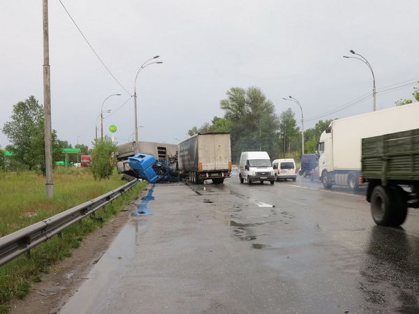 Відзначається, що аварія сталася близько 15:00 на вулиці Академіка Заболотного. В результаті ДТП ніхто не загинув, але важкі травми отримали водії двох вантажівок.