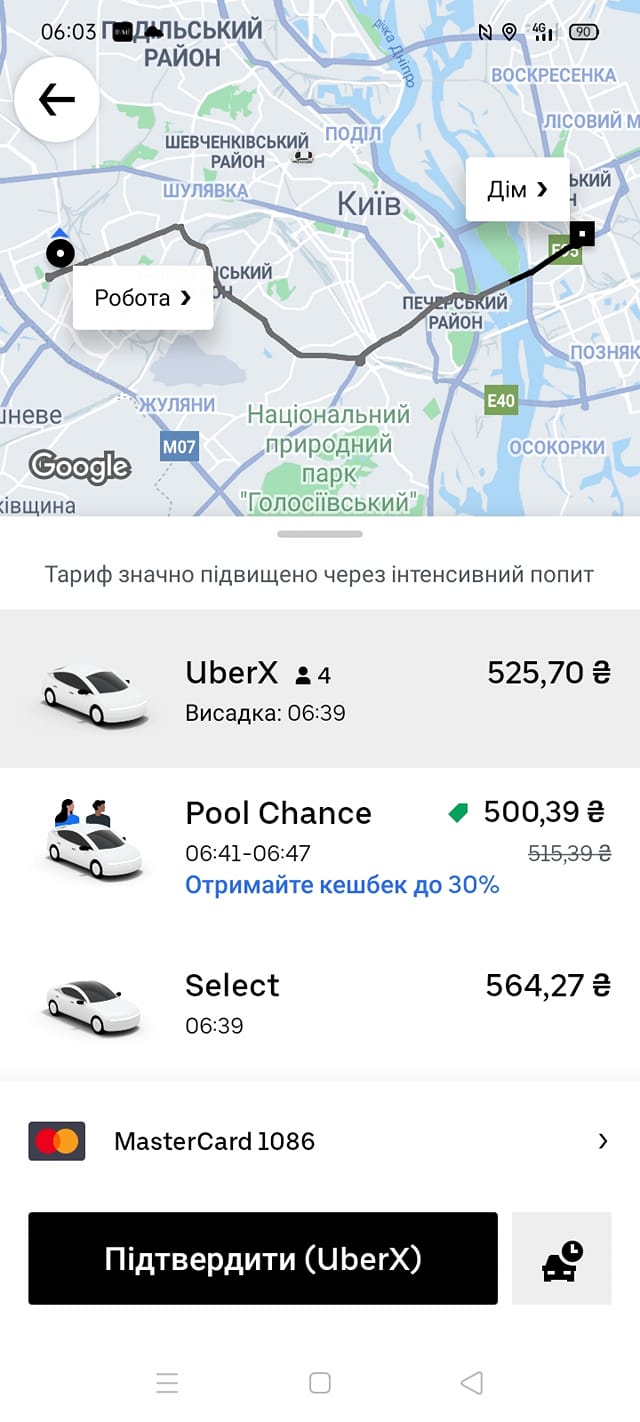"Заради інтересу сьогодні дивилася ціни Уклон. Зазвичай з Фучика на Драйзера 150-160 грн, вдень було 397, зараз 222", - пишуть в коментарях.