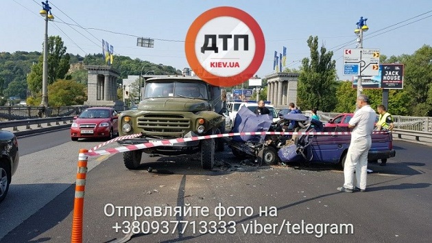 У Києві на мосту Патона автомобіль марки "Москвич" пікап з арсеналом зброї в багажнику врізався в ЗІЛ.