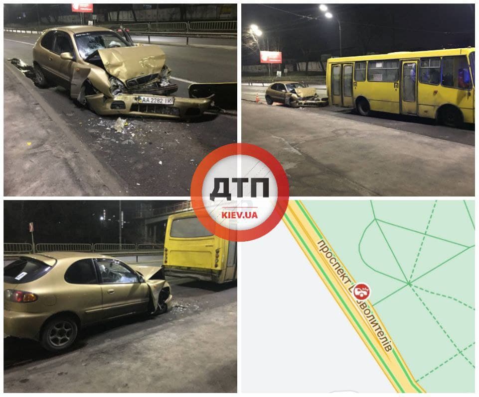 Водій Daewoo Lanos не витримав дистанцію і на великій швидкості протаранив маршрутку в Києві вчора, 9 січня.