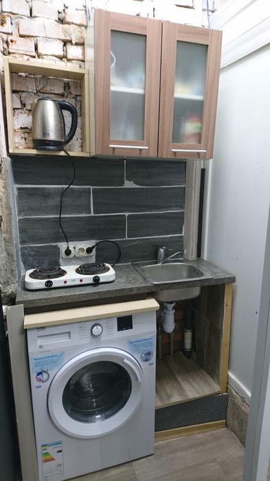 У "квартирі" є душ, туалет, пральна машина, бойлер, холодильник, електроплита, шафа і диван. Площа міні-житла - 6 кв. м.