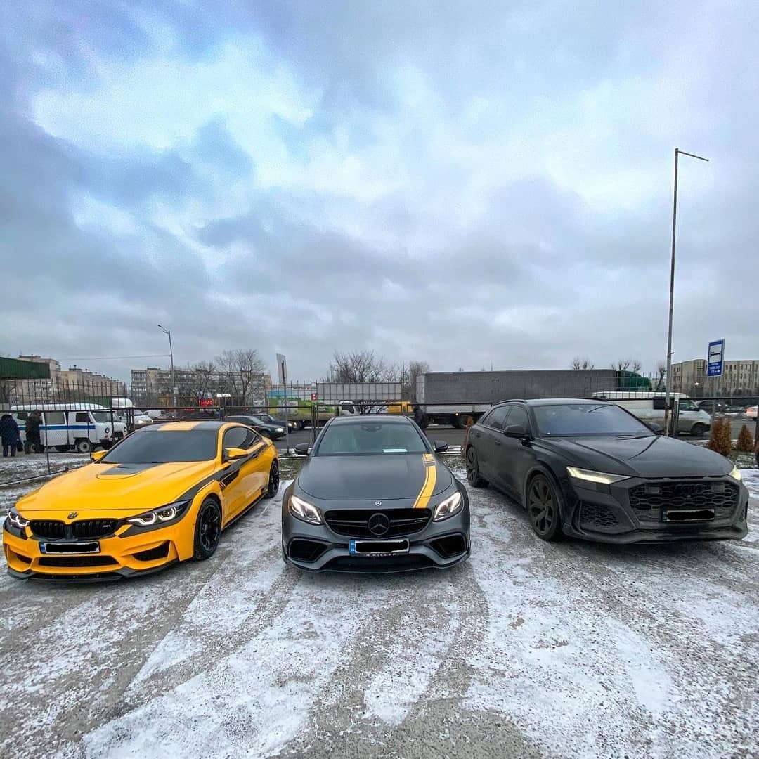На вулиці столиці стояли BMW M4 Coupе, Mercedes-AMG E 63 S 4MATIC + (W213) і Audi RS Q8.