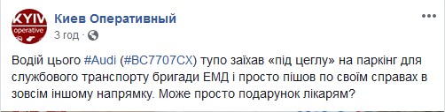 Решта ж користувачі жартують, що на авто приїхав водій "швидкої" на свою зміну, а також про те, що авто належить дружині головлікаря.