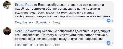 При цьому, одні читачі відзначають, що зазвичай "цегла" в таких місцях встановлена не за нормами і будь-який водій може спокійно скористатися парковкою, якщо не створює перешкод для виїзду службових авто.