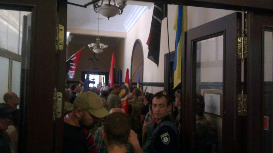 Активісти потрапили всередину Київради з допомогою одного з депутатів. Вони зажадали, щоб обранці пояснили, чому вони не проголосували за законопроект. Через кілька хвилин прибули співробітники поліції. Коли вимкнули світло, правоохоронці витіснили і виштовхали активістів.