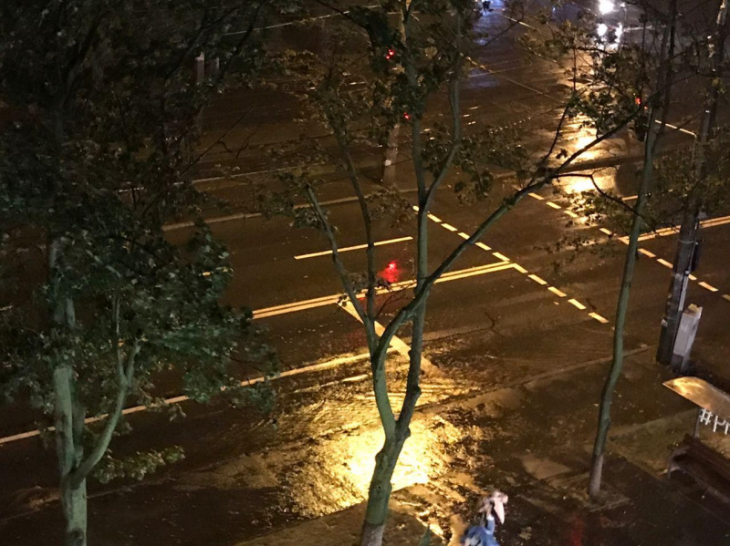 Злива супроводжувалася поривами шквального вітру. Частину вулиць столиці затопило.