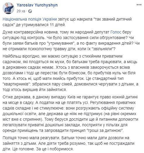 Користувачів мережі обурила ситуація з обшуком дитячого садка Києва, в якому поліція не виявила дозвільних документів.