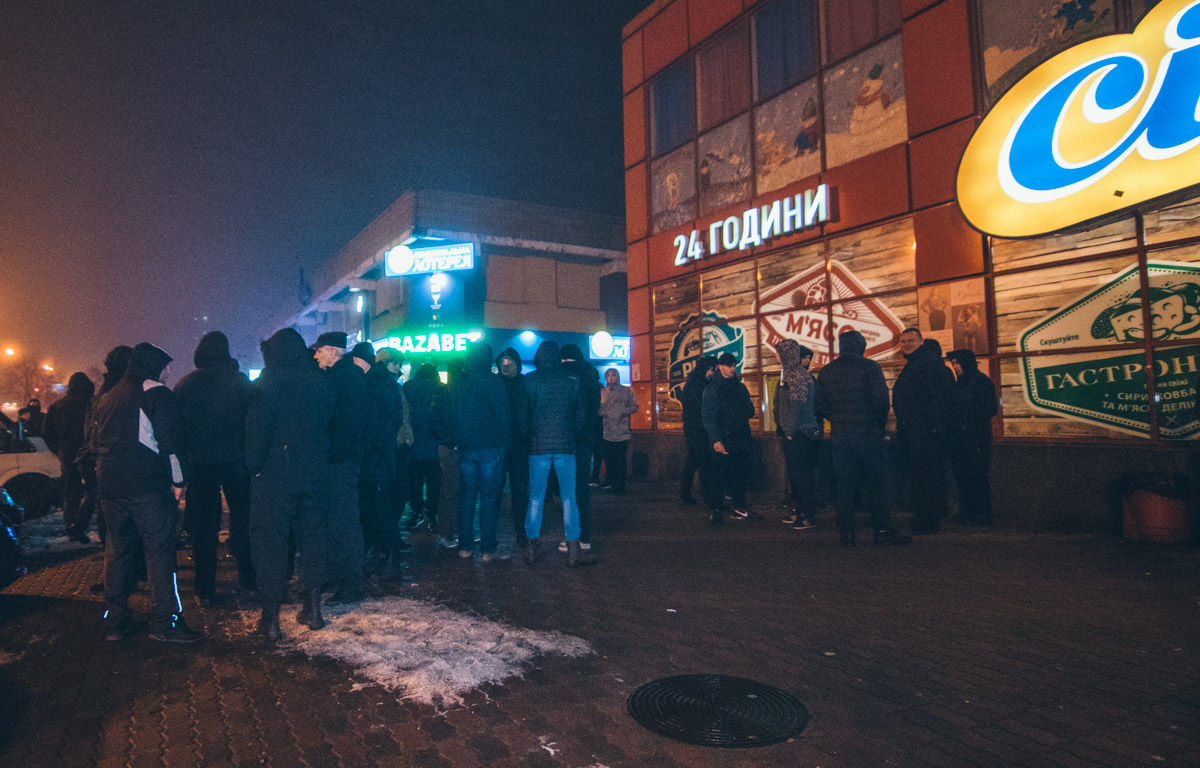 За інформацією журналістів, на місці події перебувають більше сотні міцних молодих людей в масках, які збиралися біля стін магазину "Сільпо". З протилежного боку будівлі знаходилися поліцейські, в тому числі в шоломах і бронежилетах. При цьому обидві сторони повідомляли, що в будівлі торгового центру знаходяться "Нацдружіни", які здійснили рейдерське захоплення приміщення.