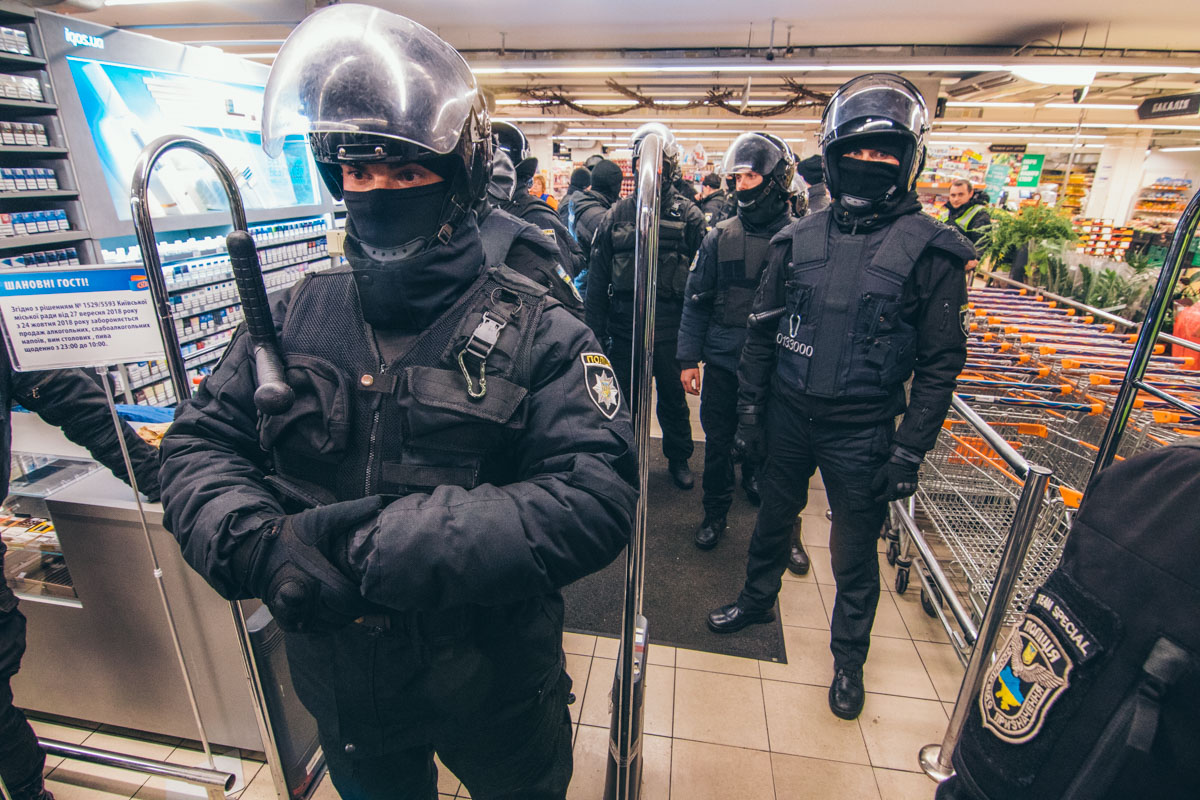 Близько 23:00 співробітники поліції із застосуванням сили вивели з будівлі представників "Національних дружин". При цьому трьох активістів поліцейські затримали і конфіскували бронежилети. Намагаючись повернути своїх товаришів, "дружинники" знову спробували увійти всередину торгового центру, в цей час біля входу невідомі розпилили перцевий газ.