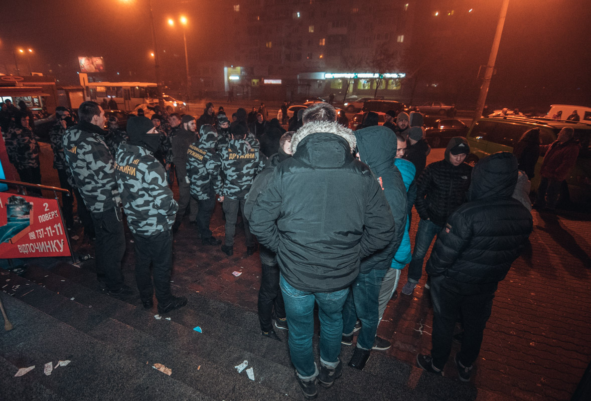 10 грудня в Києві відбувся конфлікт навколо торгового центру "Дарниця" за участю представників "Національних дружин", поліції і невідомих людей в масках.