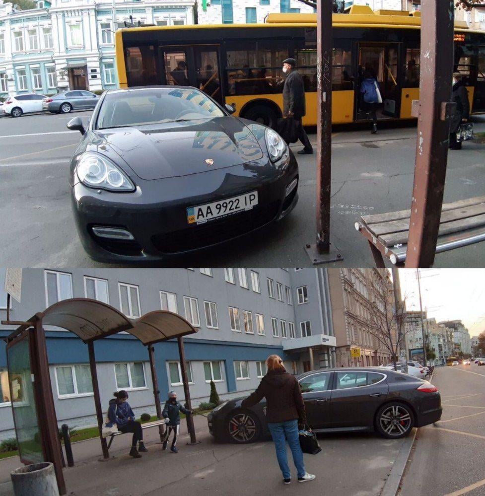У центральній частині столиці водій припаркував свій автомобіль прямо на зупинці громадського транспорту.