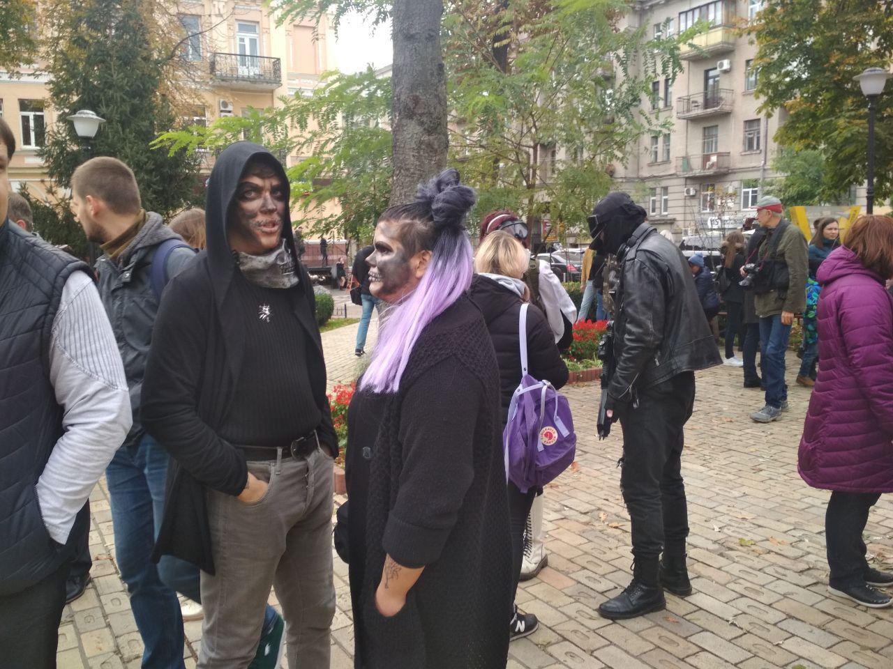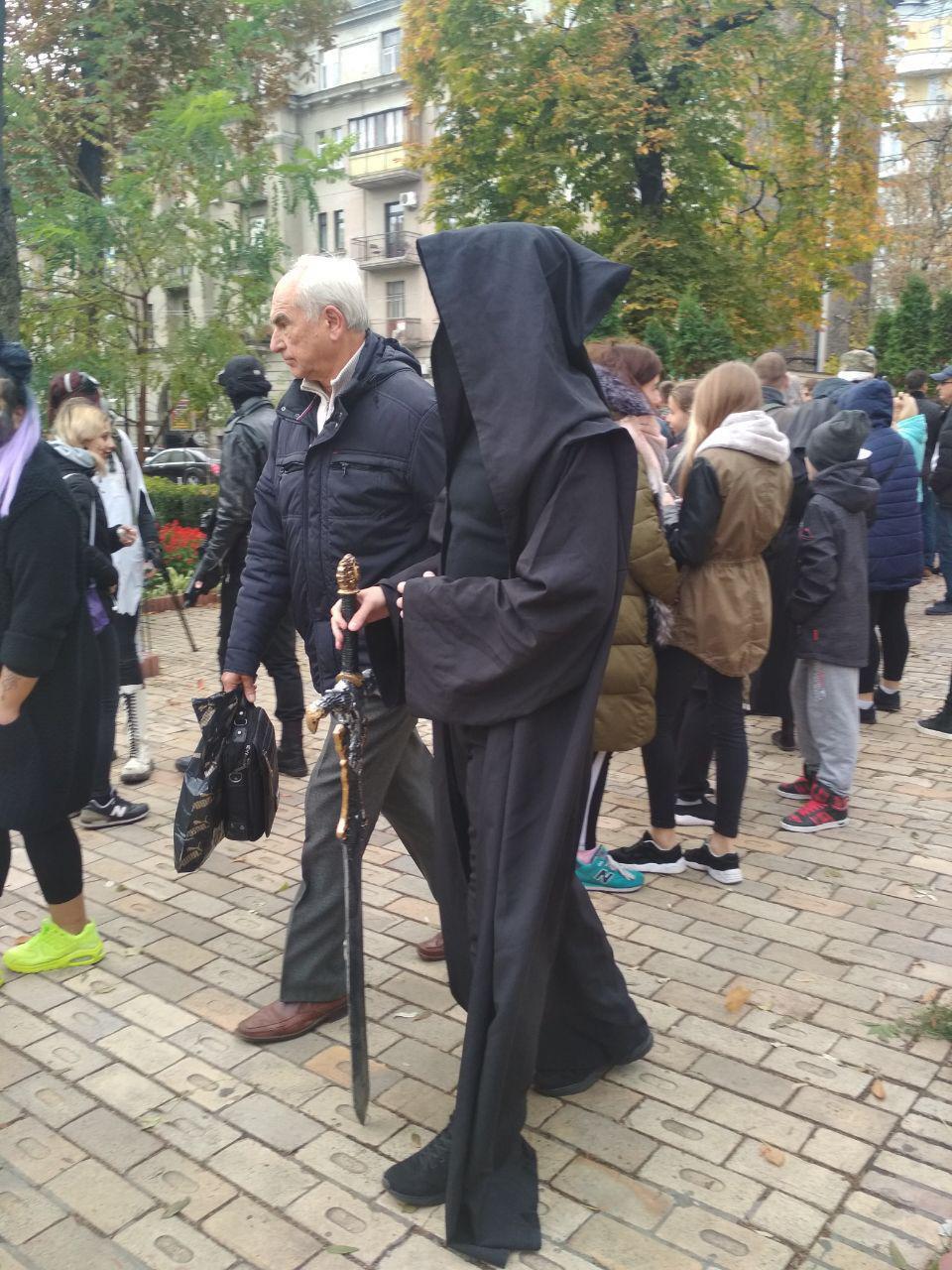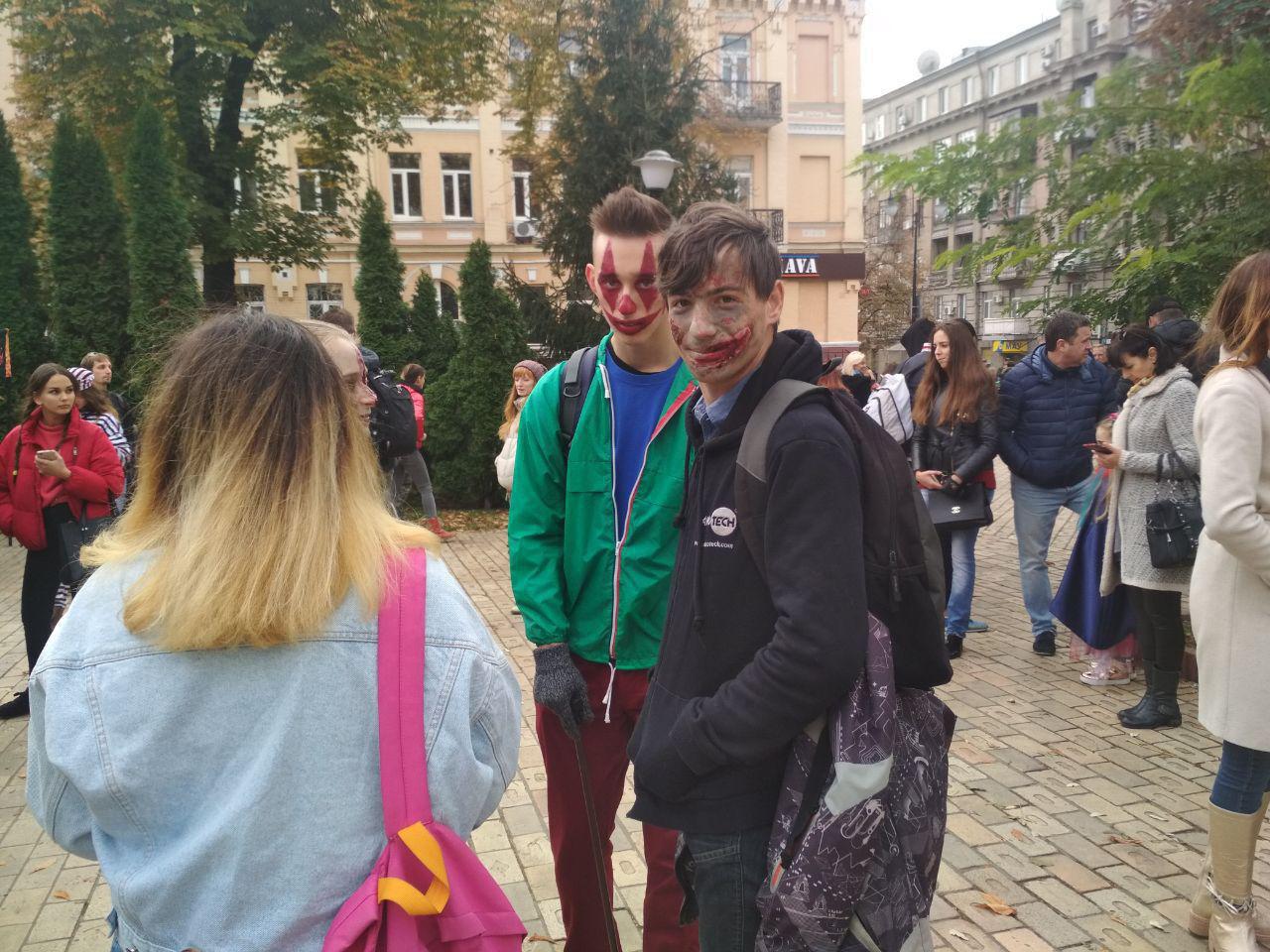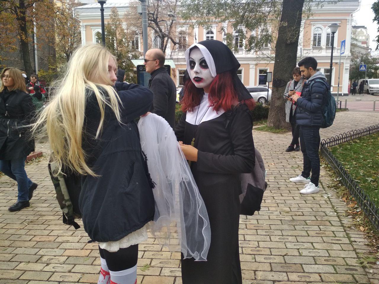 Біля метро Золоті Ворота в столиці зібралося близько сотні учасників зомбі-параду в гримі. Вони одягнені в костюми мертвих черниць, лицарів темряви, зомбі, відьом, привидів та інших містичних персонажів.