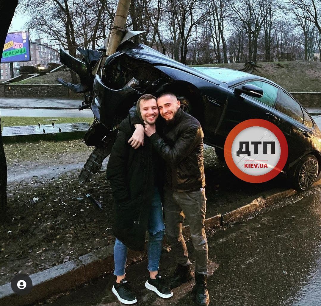 У Києві вранці в п'ятницю, 1 січня, на вулиці Глибочицькій при підйомі до вулиці Чорновола, водій автомобіля Jaguar не впорався з керуванням і в'їхав в стовп. За попередніми даними, в ДТП потрапив відомий спортсмен і мотогонщик.