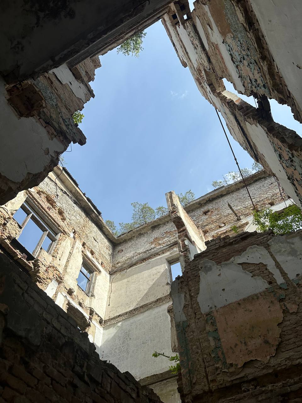 Цей будинок був збудований ще в 1936 році й що тоді, що зараз, такий тип будівель має назву "Сталінка ", від імені тогочасного правителя. Такий тип багатоквартирного сімейного житла відрізнявся високими стелями, великими вікнами та достатньою кількістю кімнат. Авжеж, радянській номенклатурі яка селилась в таких будинках не було потреби тіснитися всією сім'єю в маленькій кімнатці. Поверхів вони мали найчастіше від 2 до 5, а будувалися близько до робочих місць – цехів, фабрик, заводів та центру міста. І матеріали для них обиралися хороші й недешеві, червона та біла цегла, а зовнішній фасад декорувався в стилі сталінського ампіру, що навіть зараз зберігає відтінки минулої величі. То як вийшло, що настільки якісний й дорогий на свій час будинок зараз стоїть в руїнах?