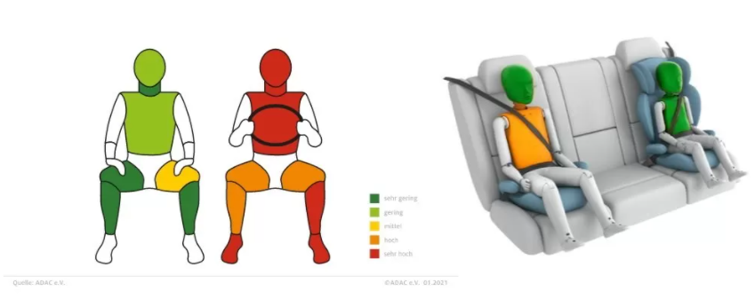 Оскільки у ADAC була всього одна машина, то і краш-тест один - перевірений часом фронтальний удар на швидкості 64 км /год. Такий удар виявився для його водія-манекена смертельним: голова, шия, грудна клітка, ліва гомілка і обидві стопи пофарбовані в протоколі червоним кольором, що означає максимальний, смертельний рівень небезпеки.