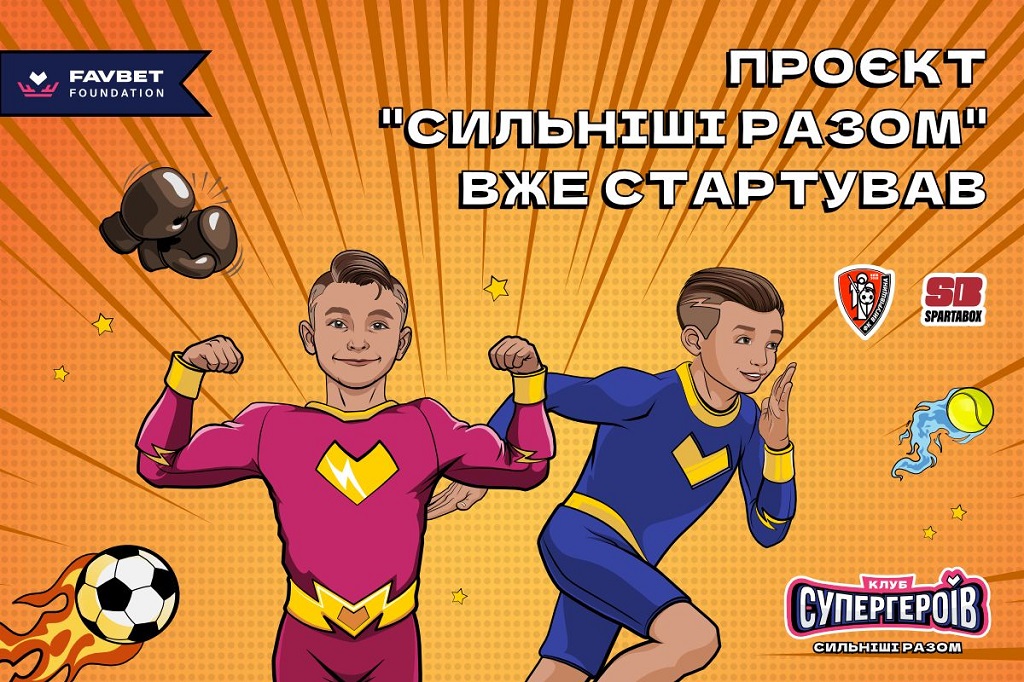 Проєкт "Сильніші разом" програми "Клуб Супергероїв" зосереджений на допомозі дітям ВПО та військовослужбовців, а також дітям дітям із соціально вразливих груп. Favbet Foundation – благодійний фонд, заснований у 2020 році. Метою фонду стало створення сприятливого середовища для щасливого майбутнього країни, а місією – інвестиції в освіту, спорт та технології для забезпечення розвитку нового покоління та збереження талантів в Україні.