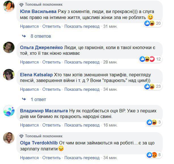 Користувачі мереж в цілому сприйняли таку поведінку нардепа на робочому місці в позитивному ключі. Так, були згадані плани нового керівництва країни по боротьбі з демографічною кризою, також нардепу бажали особистого щастя.
