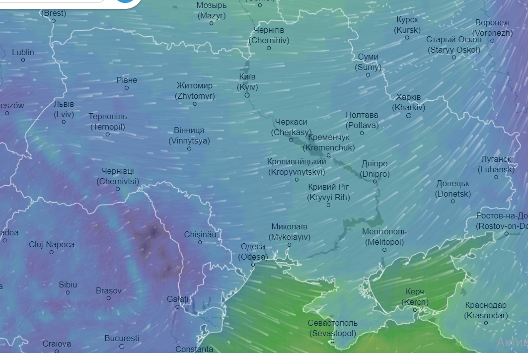 Про це свідчать дані сервісу моніторингу погоди Ventusky.